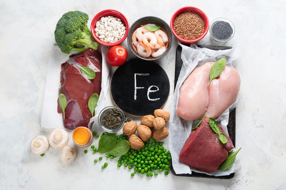 - Включайте в рацион продукты богатые железом: мясо‚ печень‚ рыбу‚ морепродукты‚ шпинат‚ бобовые‚ орехи.